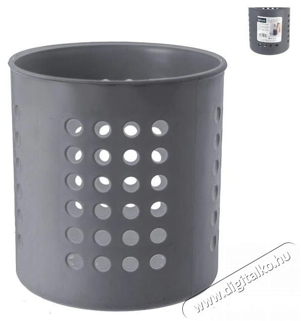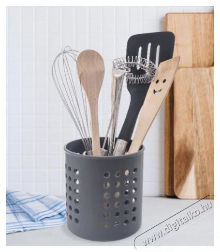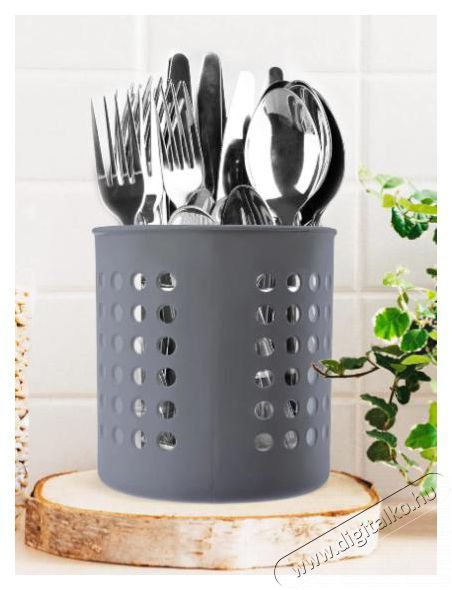 Evőeszköztartó állvány - műanyag, szürke, lyukakkal, konyhai eszközök tárolására a pulton, evőeszközökhöz vagy evőeszköz szárítóként