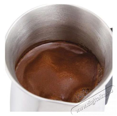 Tejkiöntő - cezve, rozsdamentes acél edény, 400 ml, hagyományos görög vagy török kávé készítéséhez ideális, túlcsordulásgátló funkció és kettős hőmérséklet-szabályozás, 360 fokban forgatható talp, működést jelző fény, biztonsági elem víz nélküli forralás ellen, 800 W.