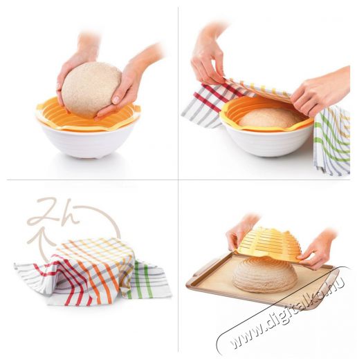 Van egy trükk arra, hogy otthon is igazán ízletes kenyeret süssön hagyományos sütőben. Mégpedig ez az elképesztő kelesztőkosár tállal egyben. A tál belső oldalán egy mérőedény van, hogy könnyebben előkészíthesse a kenyér tésztáját. A tésztát egyszerűen hagyja kelni kosárban, amíg kellően fel nem jön. A kosár oldala gondoskodik a kenyér különleges megjelenéséről, mintázatáról. A felesleges liszt pedig a tálban marad. A készlet gond nélkül használható ismételten, hiszen tisztítható mosogatógépben.