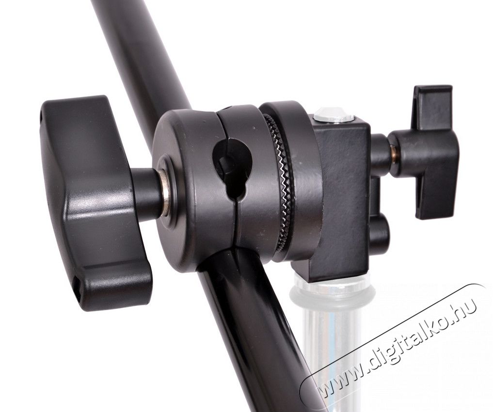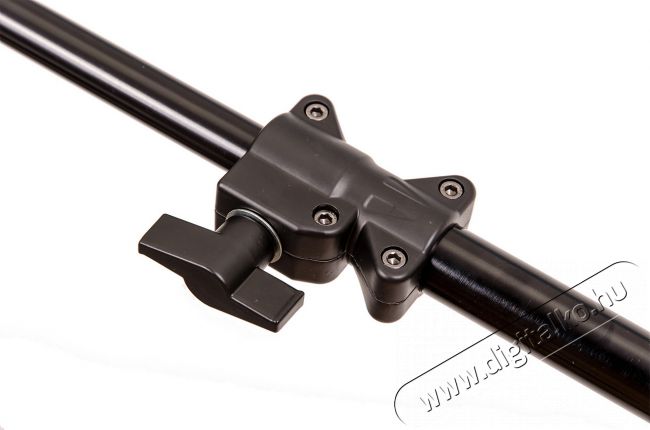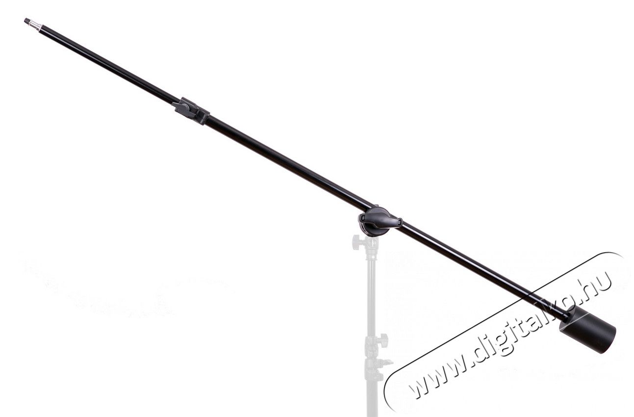 Praktikus boom megoldás. Bármilyen "spigot" végződésű állványra rögzíthető. Rövid és hosszú spigottal is kompatibilis. A keresztrúd teleszkópos így 115 és 203 cm között tetszés szerint változtatható a hossza.