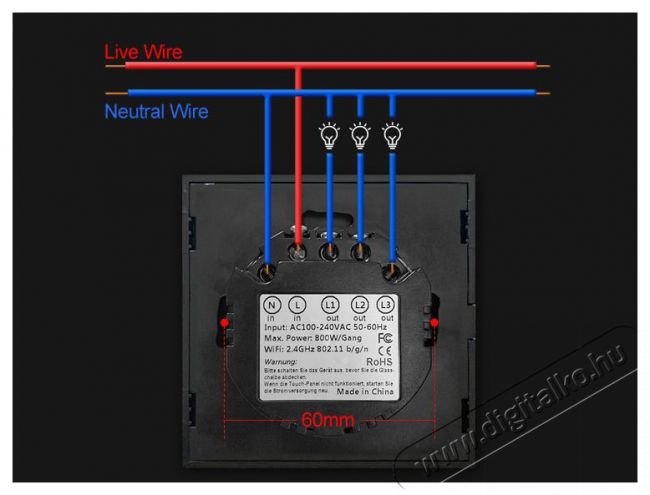 - Kétcsatornás intelligens kapcsoló érintőképernyővel