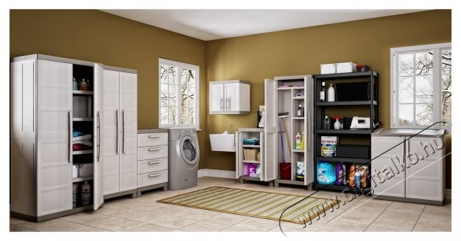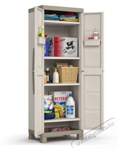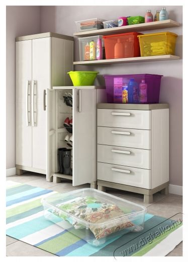 Keter Excellence Tall 241046 4 polcos szekrény, 15 kg/polc, TUV GS tanúsítvány, 65 x 45 x 97 cm méret, bézs/szürkeKeter Excellence Magas gardrób. Ha különböző méretű tárgyakat szeretne tárolni, a Keter Excellence szekrényeink állítható polcai megadják a szükséges rugalmasságot. A zárható ajtók nagyobb biztonságot nyújtanak, a lábak pedig felemelik a szekrényt a földről, így ideális garázsokhoz és mosodákhoz. A bézs/szürke színekben kapható Base modell egy polccal rendelkezik, amely akár 15 kg-ot is elbír. Méretek: (HxSzxM) 65 x 45 x 97 cm; TUV GS tanúsítvány; 4 polc, amelyek egyenként akár 15 kg-ot is elbírnak; Magas lábak; Könnyen összeszerelhető; Zárható ajtók; Könnyen tisztítható; Állítható polc