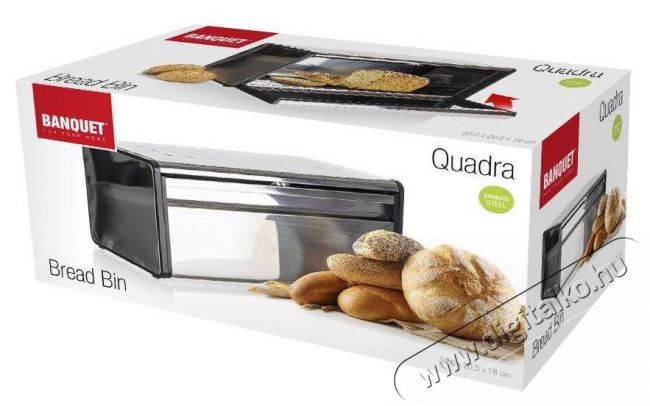 A hasznos Banquet Rozsdamentes acél, QUADRA 39,5 x 20,5 x 18 cm, fekete peremmel kenyértartó legfontosabb előnyei- A hasznos Banquet kenyértartó garantálja, hogy a kenyér friss marad, így tovább lesz fogyasztható