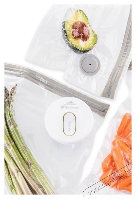 Hosszú ideig szeretnéd tartósítani az élelmiszereket? Az ETA Vital Pump 0762 90010 automata vákuumozó gondoskodik arról, hogy kivételesen sokáig tartósak maradjanak élelmiszereid, és helyet takaríts meg a fagyasztóban. Az ETA vákuumozó minden háztartásban megtalálja a helyét, és kompakt kialakítását is értékelni fogod. Az ETA Vital Pump 0762 90010 egy gombnyomással elszívja az összes levegőt az ETA Vital Bag-ból vagy az ETA Vital Box-ból. Amikor avákuumozás befejeződik, a szivattyú automatikusan kikapcsol, és az élelmiszer a zacskóban vagy a dobozban marad összepréselve. A vákuumozó akár 6 hónapig is bírja egy feltöltéssel, és USB mágneses csatlakozórendszerrel tölthető.