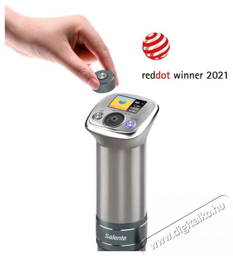 Salente ChefMaxSzeretnéd, hogy az ételek megőrizzék ízüket, állagukat, a bennük rejlő vitaminokat, ásványi anyagokat és lédúsak maradjanak? Készítsd el őket a Salente ChefMax sous vide főzővel. A sous vide módszer az egyik legmodernebb főzési módszer - a csomagolt alapanyagok lassú főzése vízfürdőben, állandó alacsony hőmérsékleten történik. A készülék kiváló minőségű rozsdamentes acélból készült, amely hosszú élettartamot garantál. A világon elsőként büszkélkedhet színes TFT kijelzővel és integrált receptekkel. 18 recept közül választhatsz, és 5 sajátot is hozzáadhatsz. A Salente ChefMax sous vide főző a rangos Red Dot Design Award (Winner 2021) győztese és díjazottja.