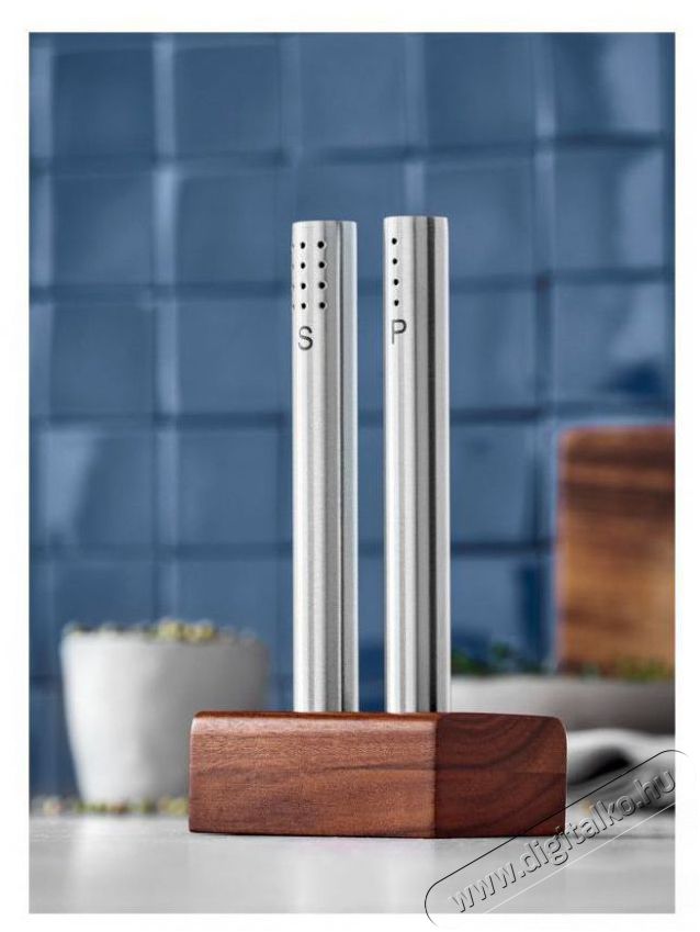 A szokatlan formájú és ízléses kialakítású só és bors fűszerkészlet minden asztal dísze lesz. A WMF 634546040 egy akácfából készült talapzatot és egy kiváló minőségű matt rozsdamentes acélból készült só- és borsszórót tartalmaz. A készlet alkalmas otthonokba, kávézókba és éttermekbe. Nagyszerű ajándék.