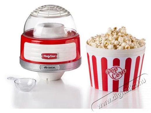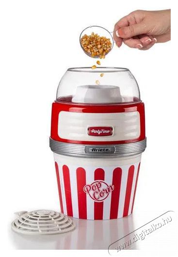 Az Ariete Party Time 2957 popcorn készítő egyszerű karbantartása és működtetéseAz Ariete Party Time 2957 popcorn készítő teljesen szétszerelhető, így karbantartása és tisztítása egyszerű. Egy praktikus kanál is tartozik hozzá, amely segít a popcorn adagolásában és egyéni adagokra osztásában.