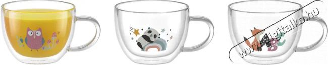 Siguro Owl thermo bögre Ezek a kézzel fújt, duplafalú, aranyos motívummal ellátott bögrék rendkívül tartós boroszilikát üvegből készülnek, amely számos nagyszerű tulajdonsággal rendelkezik, különösen a hőszigetelés terén. A Siguro bögrék űrtartalma 280 ml - ideális méret például tea, vagy nyáron a hűtött gyümölcslé számára. Értékelni fogod, hogy könnyű belőlük inni, és gyermeki motívum pedig minden lány és fiú tetszését elnyeri. A csomag két bögrét tartalmaz.