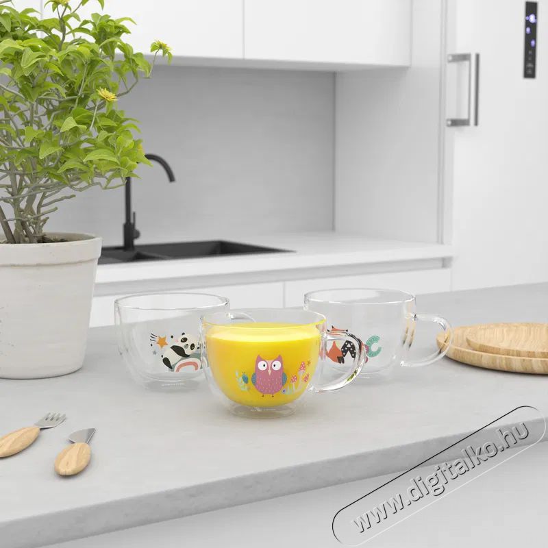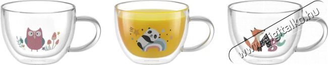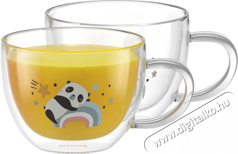 Siguro Panda thermo bögre Ezek a kézzel fújt, duplafalú, aranyos motívummal ellátott bögrék rendkívül tartós boroszilikát üvegből készülnek, amely számos nagyszerű tulajdonsággal rendelkezik, különösen a hőszigetelés terén. A Siguro bögrék űrtartalma 280 ml - ideális méret például tea, vagy nyáron a hűtött gyümölcslé számára. Értékelni fogod, hogy könnyű belőlük inni, és gyermeki motívum pedig minden lány és fiú tetszését elnyeri. A csomag két bögrét tartalmaz.