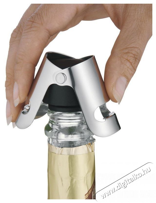 WMF Clever & More 640886030 dugó A WMF Clever & More 640886030 dugó segítségével a pezsgő, a prosecco vagy más pezsgők hosszabb ideig őrzik meg jellegzetes pezsgésüket és ízüket. Egyszerűen helyezd a palackra, és nyomd meg a szárnyakat, hogy légmentes zárást hozz létre. A dugó kiváló minőségű 18/10 Cromargan® rozsdamentes acélból készült. Kompakt méreteinek köszönhetően könnyen tárolható.