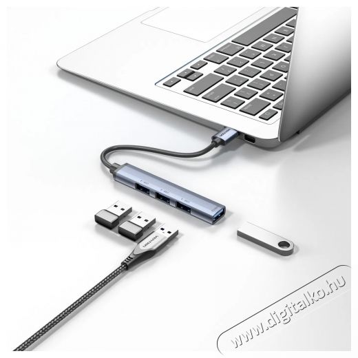 Szerezz be extra USB-A portokat, és csatlakoztass egyszerre több eszközt a laptopodhoz. A Vention USB hub összesen négy USB-portot biztosít - így könnyedén csatlakoztathatsz olyan perifériákat, mint példáulbillentyűzet, egér, pendrive vagy akár külső meghajtó.