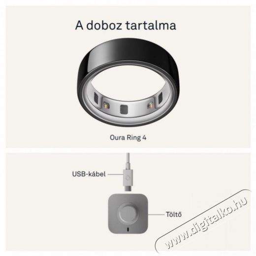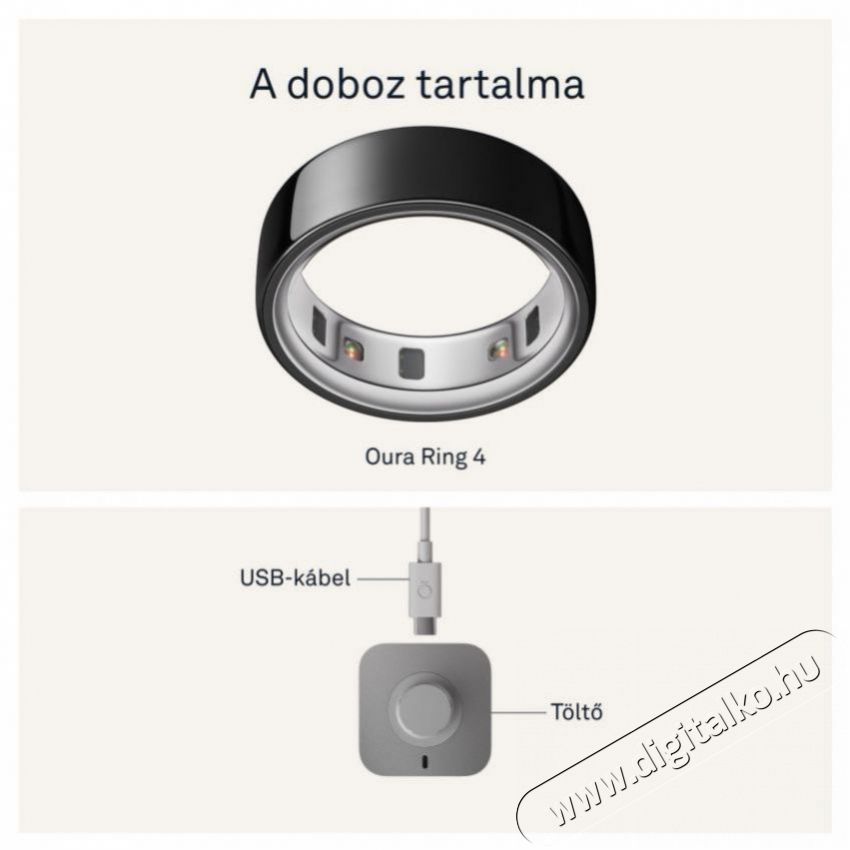 Oura Ring 4 - Elegáns okosgyűrű a folyamatos egészségmegőrzéshez Az Oura Ring 4 okosgyűrű forradalmasítja azt, ahogyan a saját testedhez viszonyulsz. A könnyű titánból készült, apró és elegáns gyűrű belsejében kutatási pontosságú technológia rejtőzik, amely elősegíti a jobb alvást, a hatékonyabb regenerálódást és segít megérteni, mi zajlik valójában a felszín alatt. Olyan kulcsfontosságú területeket figyelhetsz meg vele, mint az alvás, a napi aktivitás és kondíció, az általános felkészültségi szint, a szív egészsége vagy a mindennapos stressz szintje – olyan nagymértékű pontossággal, ami versenyre kel a hagyományos viselhető eszközök által nyújtott lehetőségekkel. Mindezt közvetlenül az ujjadról, ahol a biometrikus adatok a legpontosabbak. Az Oura Ring 4 okosgyűrű kiemelkedő precizitást nyújt a modern szenzoroknak köszönhetően, akár 8 napos akkumulátor-üzemidőt biztosít, 100 méterig vízálló, és több, mint 40 alkalmazással képes együttműködni. Bluetooth Low Energy kapcsolaton keresztül kommunikál, és teljesen kompatibilis Android és iOS eszközökkel is. Támogatja a metrikus és angolszász mértékegységeket, valamint több nyelvet, például az angolt, a németet és a japánt. Az Oura Ring 4 okosgyűrű viselésével minden fontos információ szó szerint karnyújtásnyira van – pontosabban az ujjadon.