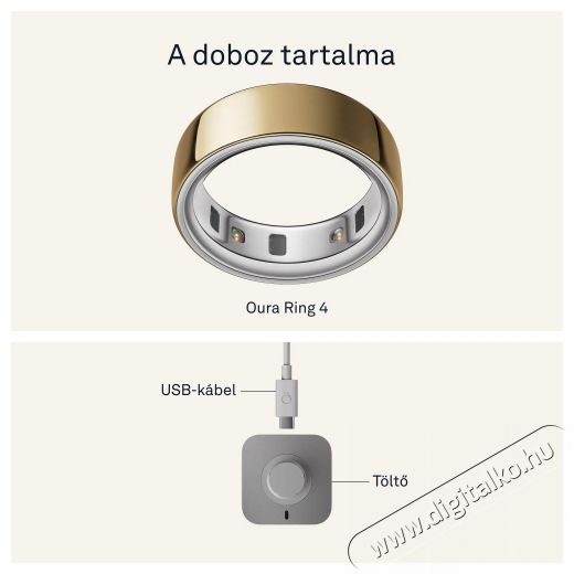 Elegáns okosgyűrű a folyamatos egészségmegőrzéshez Az Oura Ring 4 okosgyűrű forradalmasítja azt, ahogyan a saját testedhez viszonyulsz. A könnyű titánból készült, apró és elegáns gyűrű belsejében kutatási pontosságú technológia rejtőzik, amely elősegíti a jobb alvást, a hatékonyabb regenerálódást és segít megérteni, mi zajlik valójában a felszín alatt. Olyan kulcsfontosságú területeket figyelhetsz meg vele, mint az alvás, a napi aktivitás és kondíció, az általános felkészültségi szint, a szív egészsége vagy a mindennapos stressz szintje – olyan nagymértékű pontossággal, ami versenyre kel a hagyományos viselhető eszközök által nyújtott lehetőségekkel. Mindezt közvetlenül az ujjadról, ahol a biometrikus adatok a legpontosabbak. Az Oura Ring 4 okosgyűrű kiemelkedő precizitást nyújt a modern szenzoroknak köszönhetően, akár 8 napos akkumulátor-üzemidőt biztosít, 100 méterig vízálló, és több, mint 40 alkalmazással képes együttműködni. Bluetooth Low Energy kapcsolaton keresztül kommunikál, és teljesen kompatibilis Android és iOS eszközökkel is. Támogatja a metrikus és angolszász mértékegységeket, valamint több nyelvet, például az angolt, a németet és a japánt. Az Oura Ring 4 okosgyűrű viselésével minden fontos információ szó szerint karnyújtásnyira van – pontosabban az ujjadon.