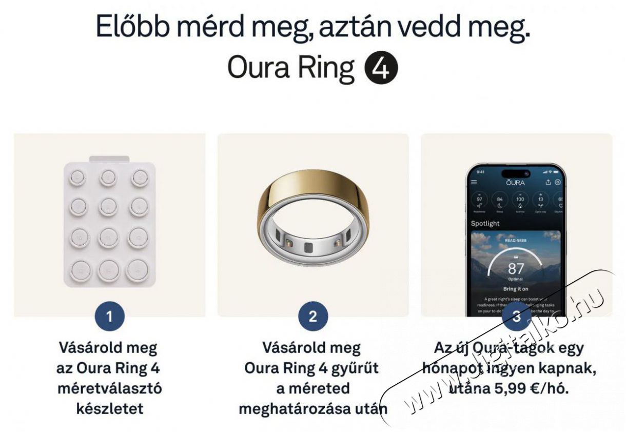 Pontos adatok az egészségedről az Oura Membership segítségével Az Oura tagsággal hozzáférést kapsz a fejlett adatokhoz és a személyre szabott ajánlásokhoz, amelyek segítenek jobban megérteni a tested működését. Nyomon követheted az alvást, a napi aktivitást, a felkészültség szintjét, a stresszszintet, a szíved egészségét és a női egészségügyi adatokat – mindezt átláthatóan, egyetlen alkalmazásban. Ezen adatok alapján az Oura minden nap segít meghatározni, mikor kell lassítanod, és mikor vagy kész a legnagyobb teljesítményre. Az új tagok az első hónapot ingyenesen használhatják, majd a tagság havi 5,99 €-ba kerül.