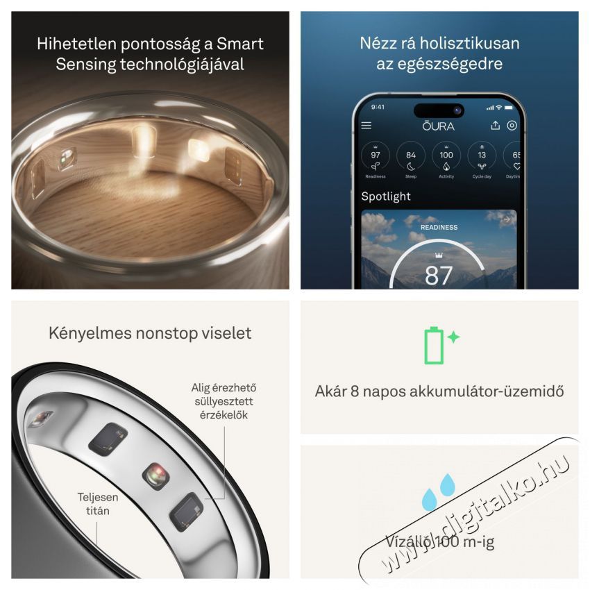 | Egészségügyi funkció | Alvásfigyelés, Menstruációs ciklus nyomon követése, Pulzusmérés, Stressz-szint mérése, Testhőmérséklet mérése, Véroxigénszint mérés |