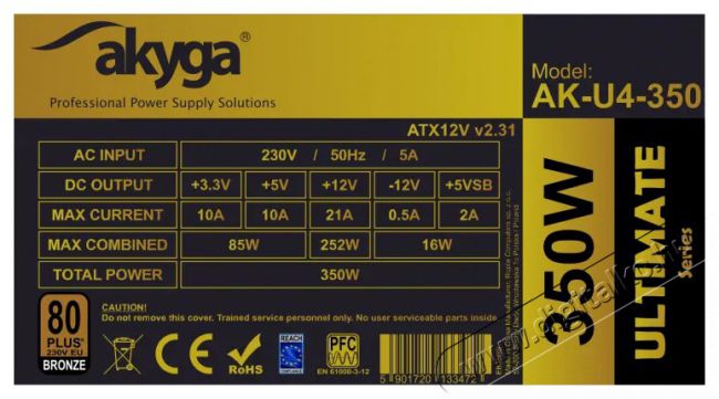 Tényleges teljesítmény – a tápegység 350 W folyamatos teljesítményt nyújt