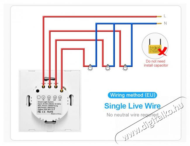 Az AVATTO LZTS02-EU-220V Zigbee switch kapcsoló legfontosabb jellemzői, fekete (1-gang, No Neutral)
