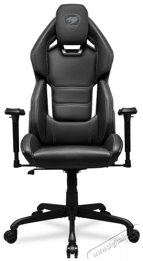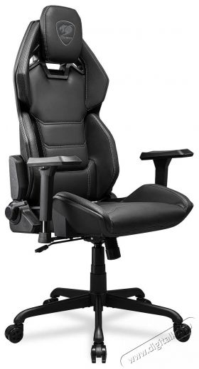 Gamer szék - huzat anyaga szintetikus bőr, hintamechanika, deréktámasz és fejtámla, magasság és mozgatás jobbra/balra kartámasz, egyensúlyozó elemek, egyensúlyozós, forgó és fém szerkezet, ülés töltőanyaga molitan (PUR hab), fém lábak, műanyag kerekek, fekete kivitel, terhelhetősége 136 kg Cougar HOTROD - fekete