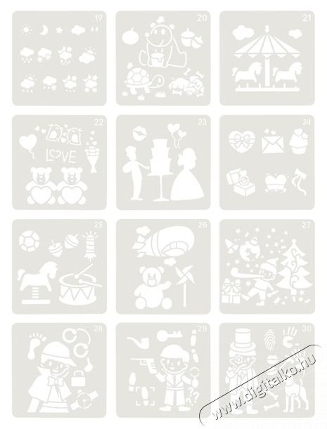 Airbrush sablonok különféle témákban 13x13 cm-es méretben. Nagyszerűen használható a Jolly Airbrush Fun és Textil készlettel.