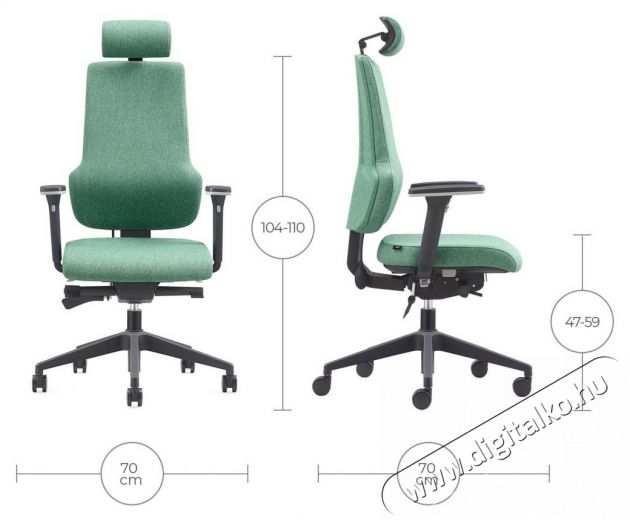 - Fel van szerelve olyan beállítható funkcióval, mint a legtöbbek számára fontos háttámla dőlésszöge, levegős deréktámasz, ülésmagasság, háttámla magassága és ülésmélység