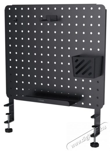 Trust GXT 724 VESTO Pegboard rendszerezőA Trust GXT 724 VESTO rendszerező segít tisztán és rendezetten tartani a játékteredet, és átláthatóan elhelyezni például a kábeleket, fejhallgatókat, gamepadeket vagy kontrollereket. A helytakarékos, fémből készült lyukacsos tábla csúszásgátló lábakkal és kapcsokkal rögzíthető az asztalhoz fúrás nélkül. A csomag tartalmaz fejhallgató-tartót, kosarat, polcot és mágnest.