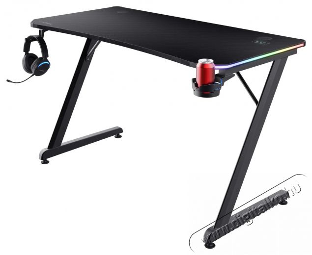 A Trust GXT709 Luminus gaming asztal főbb jellemzői, fekete- Asztal méret 120 × 60 cm