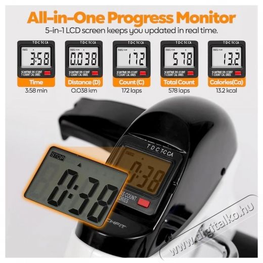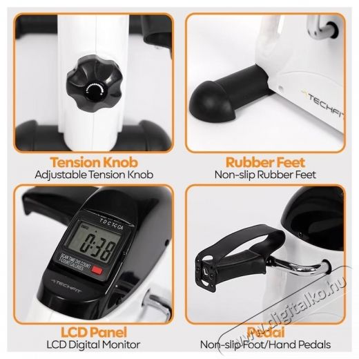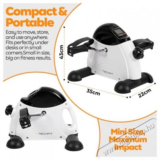 A TECHFIT PED3 az ideális minikerékpár, kis méretekkel praktikus, nagyon könnyen kezelhető; hátul szállító fogantyúval van ellátva. A TECHFIT PED3 ideális a kéz és a láb izmainak edzésére, ideális karbantartáshoz, helyreállításhoz, fitnesz gyakorlatokhoz. LCD típusú kijelzővel/monitorral van felszerelve, hogy képes legyen nyomon követni az időt, sebességet, távolságot, kalóriát, ODO-t. Ülő életmódot folytatóknak, vérkeringés javítására, időseknek, gyógyulási célokra ajánlott. Használhatja olvasáshoz, irodai munkához vagy kedvenc filmjének nézéséhez.