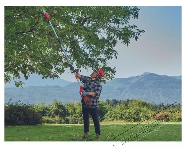 A multifunkciós szerszámot szénkefe nélküli (Einhell Brushless) elektromotor működteti, amely jóval hosszabb élettartamot biztosít a készüléknek, mint a hagyományos szénkefés motorok. A sövényvágó egység kiváló minőségű kései lézerrel vágott, gyémántcsiszolású acélból készültek. A multifunkciós szerszám ágvágó fűrészét minőségi OREGON vágókarddal és fűrészlánccal tervezték. A hosszabbítónyél segítségével könnyedén levághatja a magasabban lévő ágakat, vagy megnyírhatja a magasabb sövényeket. Az automata lánckenést használat közben a láncolajtartály biztosítja. A sövényvágó egységet 7 különböző fokozatba döntheti, a damilt pedig a tipp-automatikával tudja kiengedni. A gyári csomagolás tartalmaz egy kiváló minőségű háromágú kést és egy hosszabbítónyelet. Az állítható pótfogantyú és a heveder rendkívül kényelmes használatot tesznek lehetővé. A készülék akkumulátor és töltőkészülék nélküli kivitelben érhető el. Ezeket külön – például praktikus kezdőcsomagok formájában – vásárolhatja meg.