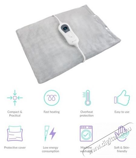 Multifunkciós, egyszerű használat A termék kezelését bárki könnyedén elsajátítja. A gomb segítségével válassza ki a három szint közül az Önnek legmegfelelőbb hőmérsékletet. A Fast Heat funkcióval a takaró gyorsan és egyenletesen melegszik, így a kellemes és nyugtató hő sokkal gyorsabban érkezik meg, mint amikor az egész szobát ki kell fűteni, főleg hidegebb körülmények között. A huzatot és a takarót gond nélkül kimoshatja mosógépben.
