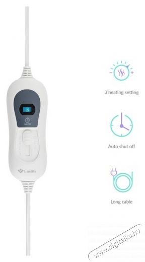 Truelife HeatBlanket 0403 Fűthető takaró A Truelife fűtőtakaró ideális a hideg napokra. Egyszerűen kapcsolja be, és pillanatok alatt kellemes meleget kínál. Nem csak ágyban használható, hanem tévé előtt is, és különösen azoknak fog tetszeni, akik fázósak, vagy hideg láb szindrómában szenvednek. A meleg pozitívan hat az izmok ellazulásra, segíthet a hátfájáson és a sport utáni fáradtságon, illetve más mozgásszervi problémák esetén. A fűtési hőmérsékletet a három felkínált szint közül maga választhatja ki. A takaró használata során nem kell aggódnia sem a túlmelegedés, sem az égési sérülések miatt.