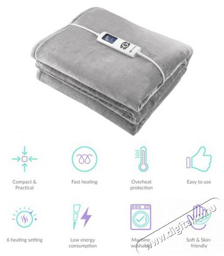 3,5 m hosszú kábel A 3,5 m hosszú kábelnek köszönhetően nincs szüksége hosszabbítóra, és nem kell a bútorokat mozgatnia. A takaró könnyedén eléri a távolabbi konnektorokat is.