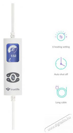 Egyszerű és biztonságos használat A takaró kezelése egyszerű és bárki megbirkózik vele. A hőfokot, valamint a takaró melegítési időtartamát hat szint közül magának választhatja ki. A takaró időzítővel van felszerelve, amelynek köszönhetően kiválaszthatja, hány órán át melegítsen. A takarót gond nélkül kimoshatja mosógépben. Takarózzon be otthon és utazásai alkalmával is Méreteinek köszönhetően a Truelife márka takarója kényelmes alvást biztosít Önnek és szeretteinek. Szolgálhat teljes értékű takaróként, vagy a szokásos ágynemű alatt betétként is. 180 x 130 cm méretének köszönhetően ugyanis a franciaágyakat teljes szélességükben lefedi. Nem kell lemondania a melegről utazáskor vagy a nyaralóban töltött hideg éjszakák alkalmával sem. A takaró könnyen összehajtogatható, és nem igényel semmilyen speciális karbantartást.