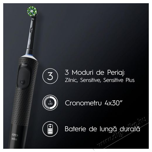 Az Oral-B Vitality Pro elektromos fogkefe 3 fogmosási móddal rendelkezik: Napi fogmosás, Sensitive és az egyedülálló Sensitive Plus mód a hihetetlenül finom élményért.