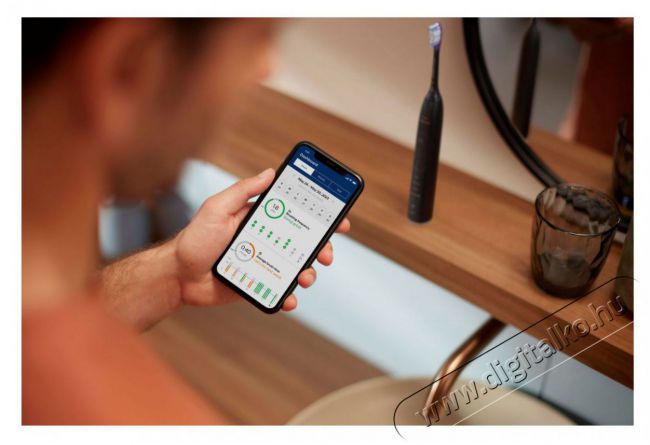 Az elektromos fogkefe csatlakoztatható a Philips Sonicare okostelefonos alkalmazásához, amely segítségével tökéletes áttekintést kaphatsz a fogápolási szokásaidról. A fogkefe képes érzékelni a fogmosási módodat, és az alkalmazás minden használat után azonnali visszajelzést ad, ami segít javítani a fogmosási technikádat.