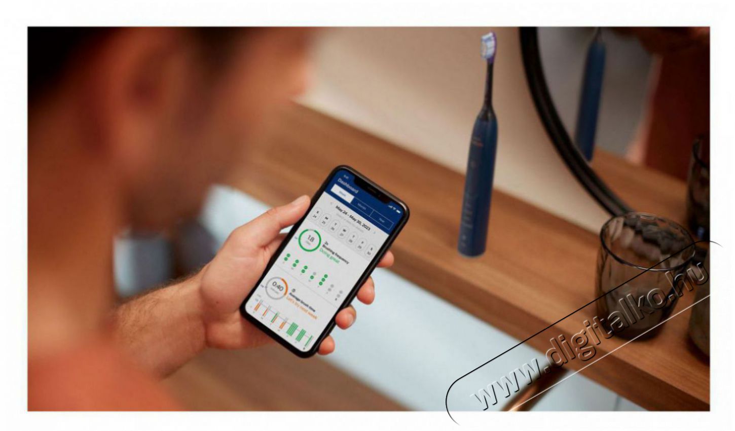 Az elektromos fogkefe csatlakoztatható a Philips Sonicare okostelefonos alkalmazásához, amely segítségével tökéletes áttekintést kaphatsz a fogápolási szokásaidról. A fogkefe képes érzékelni a fogmosási módodat, és az alkalmazás minden használat után azonnali visszajelzést ad, ami segít javítani a fogmosási technikádat.