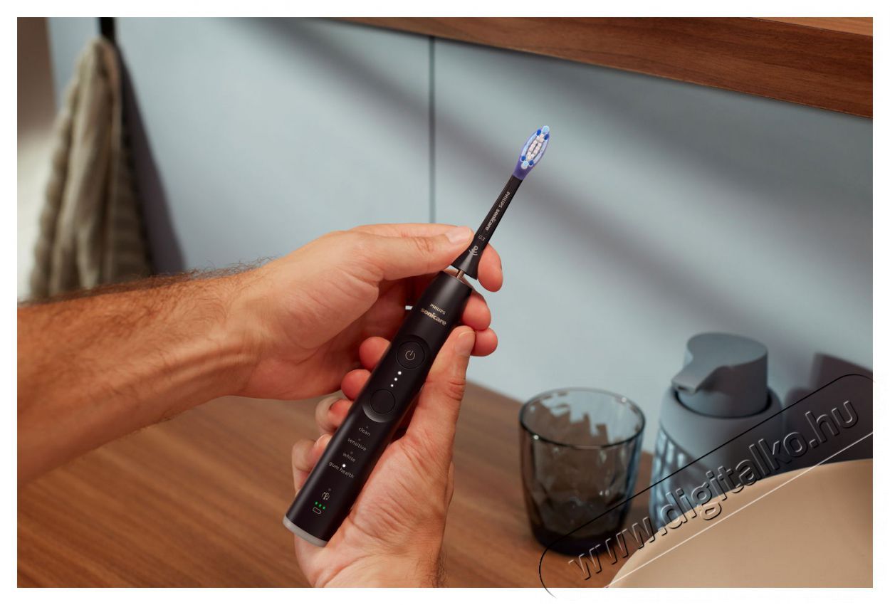 Az új generációs Sonicare elektromos fogkefe teljesen új szintre emeli a szájápolást. Innovatív motorjának köszönhetően automatikusan a saját fogmosási stílusodhoz igazítja teljesítményét, így tökéletes tisztaságot garantál még a nehezen hozzáférhető területeken is, miközben kényelmes és kíméletes az ínyedhez. A pontosan 62 000 szónikus mozgás percenként hatékonyan távolítja el a lepedéket, és dinamikus Sonicare hullámot hoz létre, amely mélyen behatol a fogközökbe. Az új motor csendesebb, tartósabb és kevesebb energiát fogyaszt.