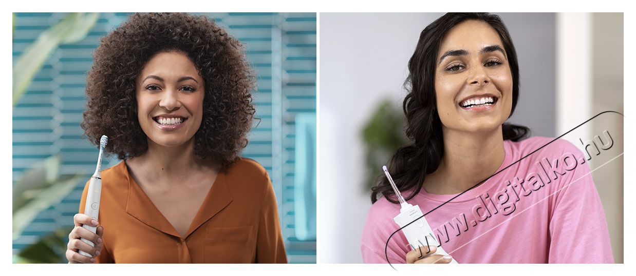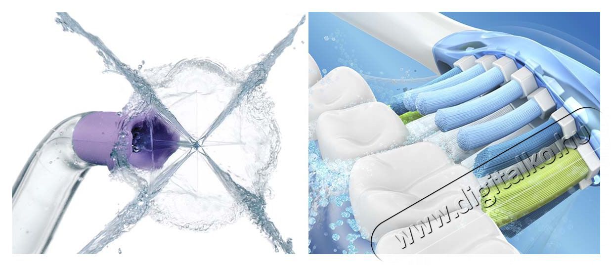Az elektromos fogkefe az innovatív Philips Sonicare technológiát használja, amely akár 62 000 gyengéd pulzáló és súroló mozdulatot végez a legalaposabb tisztítás érdekében. A fogkefe használata után két percen belül a száj ugyanolyan ápolásban részesül, mint egy hónap alatt kézi fogkefével. A fogközök extra alapos tisztításához használd a Quad Stream technológiával ellátott erőteljes szájzuhanyt, amely X alakban irányítja a vízáramlást, hogy még több fogat és ínyvonalat fedjen le. A speciálisan kialakított Quad Stream fúvóka kétszer olyan hatékony tisztítást biztosít, mint egy fogköztisztító kefe. A fogközök tisztításával segít megszabadulni a szájszagtól és javítja az íny egészségét.