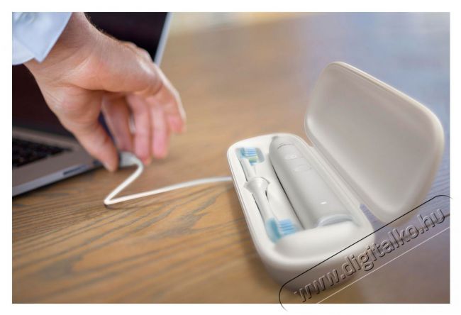 Kényeztesd magad ragyogó mosollyal és tökéletesen tisztított fogakkal, még akkor is, ha távol vagy otthonról! A csomagban található egy újratölthető utazótok USB-töltéssel, amelyben a kefe és a fej pontosan elfér, és könnyen tárolható. Otthon az elegáns pohár töltőállomással és a minimalista talppal töltheted fel fogkefédet.