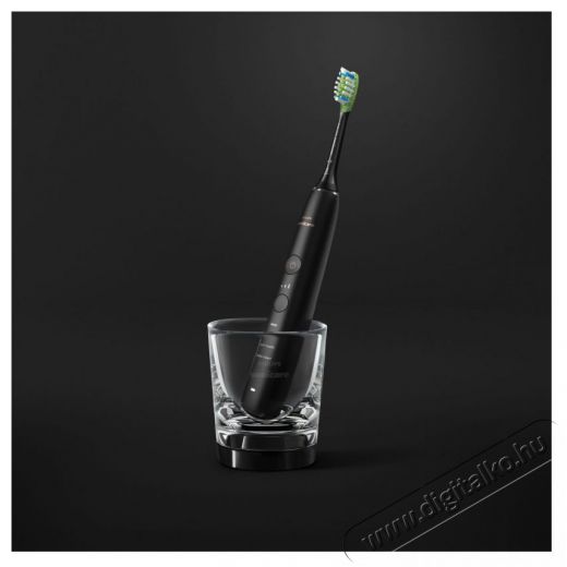 Mindig van mód a jobb tisztításra. Tapasztald meg a tökéletesen tiszta fogak és fogközök szenzációsan friss érzését! A Philips Sonicare 9000 DiamondClean elektromos fogkefe és egy nagy teljesítményű hordozható szájzuhany kombinációja a lehető legalaposabb mélytisztítást és kíméletesebb ápolást biztosítja a szájnak. Az idő töredéke alatt eltávolítja a lepedék és a törmelék akár 99,9%-át a fogak közül, a fogfelszíneken és az íny vonalán. A fogkefe nyomásérzékelővel van felszerelve, és figyelmeztet, ha túl nagy nyomást gyakorolsz a fogaidra és az ínyedre. Az intelligens mobilalkalmazáshoz csatlakoztatva azonnali visszajelzést kaphatsz a fogmosási rutinodról, valamint tippeket a még jobb fogmosási technikákhoz. A kefe automatikusan figyeli a kefefej kopási sebességét és kiválasztja a számára legmegfelelőbb tisztítási módot. A szájzuhany 60-90 másodperc alatt megszabadul a lepedéktől az egyedülálló fúvókakialakításnak és az X-alakú vízsugárnak köszönhetően, amely egyszerre több szájfelületet fed le. Mindkét készülék többféle fogmosási móddal és különböző intenzitású beállításokkal rendelkezik a maximális kényelem érdekében. A csomagban található egy fekete markolat, egy alapos lepedék eltávolításra tervezett kefefej, egy elegáns töltőpohár, egy kemény utazótok USB-töltéssel és egy hordozható, kétfúvókás szájzuhany. Új generációs elektromos szónikus fogkefe. Erőteljes hordozható szájzuhany. Philips Sonicare és Quad Stream technológia a gyengéd tisztításért.