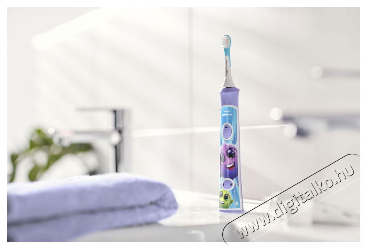 A minőségi Philips Sonicare szónikus tölthető elektromos gyerek fogkefe tökéletes fogápolást kínál a gyermekeknek. A fogkefefej minőségi sörtéivel erőlködés nélkül meg tudja tisztítani a fogak közötti nehezen elérhető helyeket, méghozzá jobb minőségben, mint a kézi fogkefe. A kiváló Philips Sonicare gyerek elektromos fogkefe 2 fogápolási módot garantál. A termék Bluetooth csatlakozással is rendelkezik, amelyen keresztül párosítani lehet a mobiltelefonokkal. A gyerek elektromos fogkefe időzítőt is kapott, amely odafigyel a fogmosás ajánlott idejére.