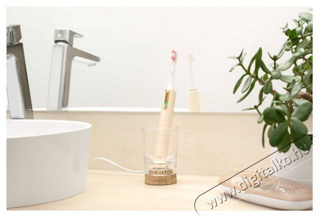 A Sencor SOC 4111GD elektromos fogkefe modern töltőpohárral érkezik, amely stílusosabbá teszi fürdőszobádat. Ez a kifinomult kiegészítő nemcsak a készülék tárolására szolgál praktikus helyként, hanem lehetővé teszi a kényelmes induktív töltést is, teljesen kábelek nélkül. Az állvány és maga a fogkefe vízálló kidolgozásának köszönhetően a töltés nemcsak egyszerű, hanem rendkívül biztonságos is.