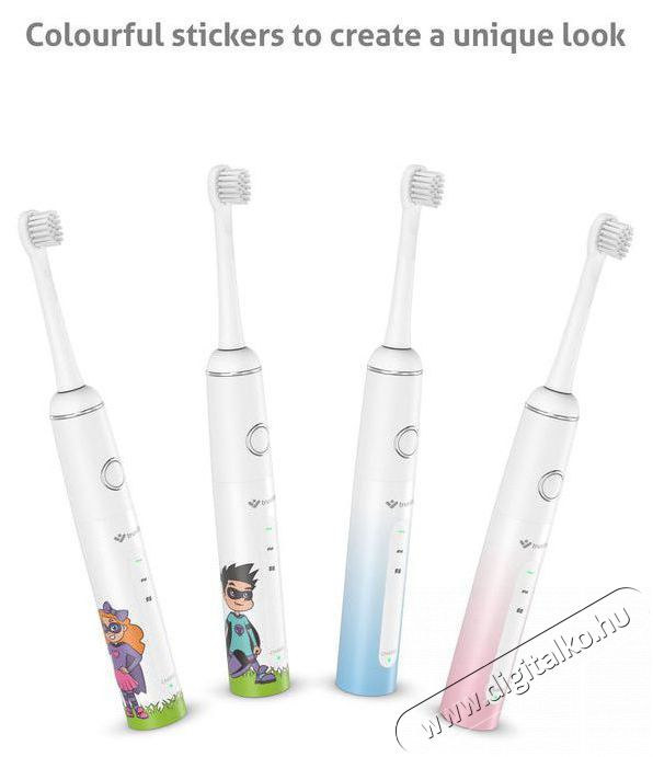 A TrueLife szónikus fogkefével a fogmosás olyan lesz, mint egy játék Kevés gyermek szeret önként fogat mosni. Ez egy unalmas és kellemetlen tevékenység számukra, ám a TrueLife SonicBrush Junior J100 fogkefe segítségével még ez a rutin is szórakoztató tevékenységgé válik. A kicsik és nagyok minden nap várják majd a pillanatot, amikor a színes matricákkal díszített fogkefét használhatják. A csomagban 4 különböző motívum közül választhatnak. Ezután már csak egy videóanimációt kell lejátszanod gyermeked okostelefonján, hogy az megtanítsa neki a helyes fogmosási technikát.