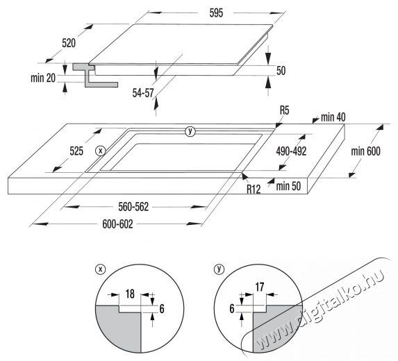 - A kifinomult MORA főzőlap méretei: 5,4 × 60 × 52 cm (ma×szé×mé)