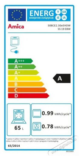 | Energiafogyasztás ciklusonként (statikus sütés) | 0,99 kWh |
