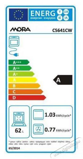 | Energiafogyasztás ciklusonként (statikus sütés) | 1,03 kWh |