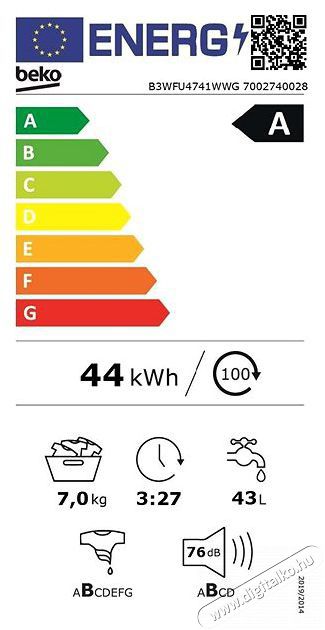 A mindössze 49,6 cm mélysége alapján az ún. slim mosógépek közé sorolják, így kis területen is elfér. Konkrétan ennek a modellnek a teljes szélessége 60 cm. A minőségi BEKO mosógép az előnyös A energiaosztályba került besorolásra. Dobjába akár 7 kg ruha is befér. Legmagasabb centrifugálási fordulatszáma 1400 ford/perc. A nagyszerű BEKO B3WFU4741WWG készülék előnye az indítás késleltetésének lehetősége, amivel úgy programozhatod be a gépet, hogy magától induljon majd el. A kijelző az elülső panelen átfogó képet ad arról, hol tart éppen a mosás. Az inverteres motornak köszönhetően a működés halk és rezgésmentes a készülék pedig hosszú életű. A megbízható BEKO B3WFU4741WWG mosógép technológiája Aqua stop, SteamCure és Gőzkezelés funkciókkal is bír. A centrifugálási zajszint 76 dB, amely hangos zene hangszintjének megfelelő.