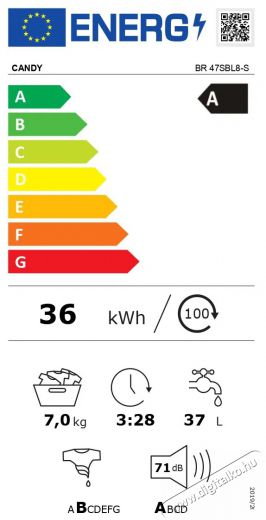 | Energiahatékonysági osztály (mosási ciklus) | A |