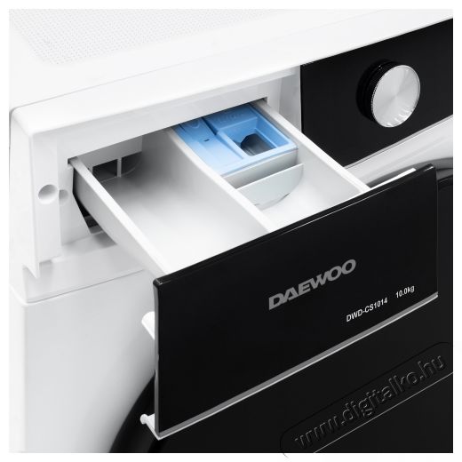 Daewoo DWD-CS1014 mosógépA DWD-CS1014 mosógép A energiaosztályú, 10 kg kapacitással és 1400 ford./perc centrifugálási sebességgel rendelkezik, amely magas szintű teljesítményt és hatékonyságot biztosít. A készülék színes érintőpanellel, intuitív ikonokkal, krómozott forgatókapcsolóval és dupla ajtóval van felszerelve a modern megjelenés érdekében. Olyan fejlett funkciókat kínál, mint a Storm Wash, Steam, My Cycle, Night Wash és Super Spa, amelyek hatékony, minden textíliatípushoz igazodó mosást tesznek lehetővé.