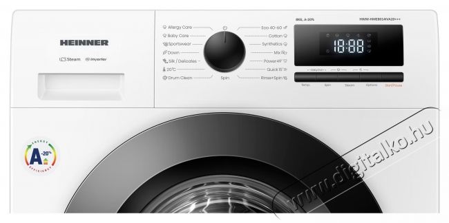 | Tulajdonság | Extra öblítés Előmosás Centrifugálási sebesség kiválasztása Mosási hőmérséklet választó Befejezési késleltetés Ruhák hozzáadása Add On Akusztikus jelzések kikapcsolása Dobtisztítás |