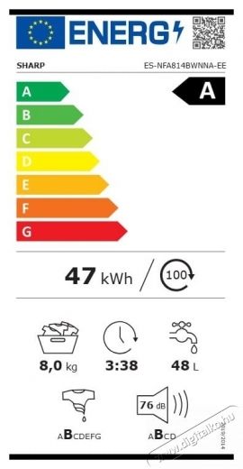 A Sharp ES-NFA814BWNA-EE egy nagy teljesítményű, energiatakarékos mosógép 8 kg kapacitással és 1400 RPM centrifuga sebességgel. Modern inverteres motorja halk, hatékony és hosszú élettartamú, míg fejlett programjai kényelmes és alapos tisztítást biztosítanak.